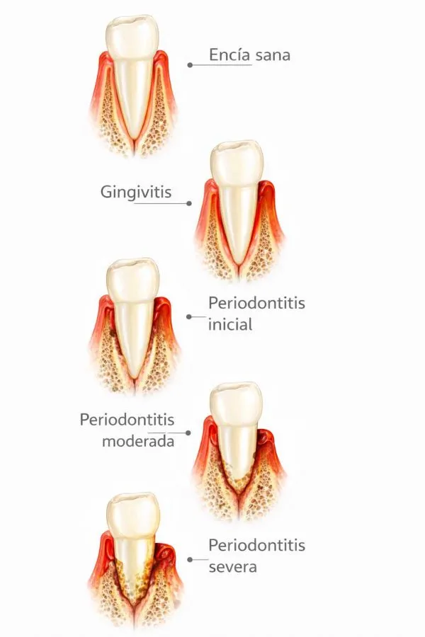 La enfermedad periodontal no aparece de un día para otro. Evoluciona por fases, y cada una requiere un abordaje distinto.